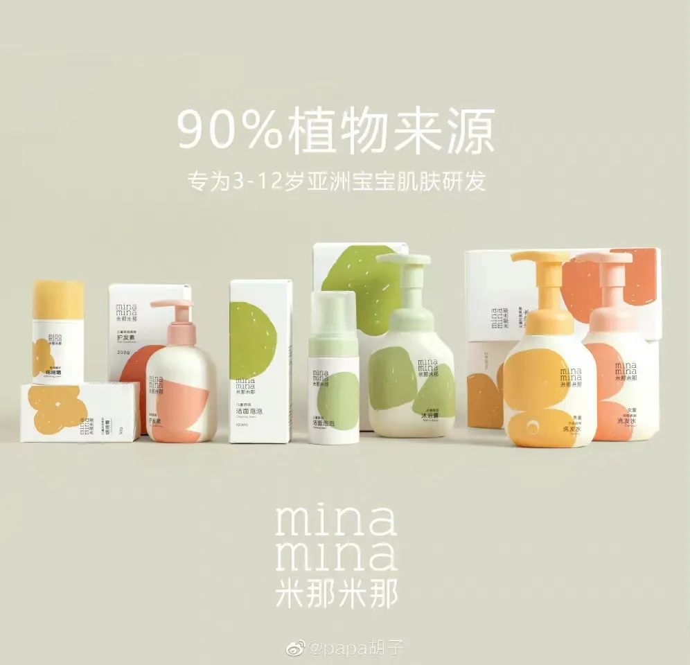 在此之外,也有不少原來做嬰童其他品類的品牌拓展品類或者是推出新品牌。嬰幼兒服飾品牌papa/爬爬就有推出一個新的洗護品牌minamina米那米那。