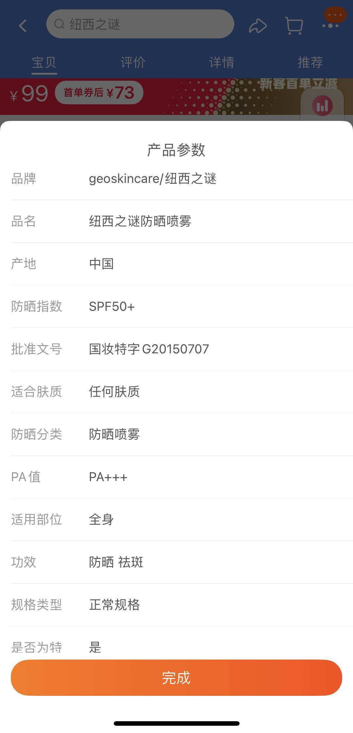 南都記者查詢到,目前紐西之謎官方旗艦店在售的防曬產品為一款防曬噴霧,批準文號為國妝特字G20150707(與藥監(jiān)局此次抽檢產品備案編號相同)。產品月銷400+,評論9000+。