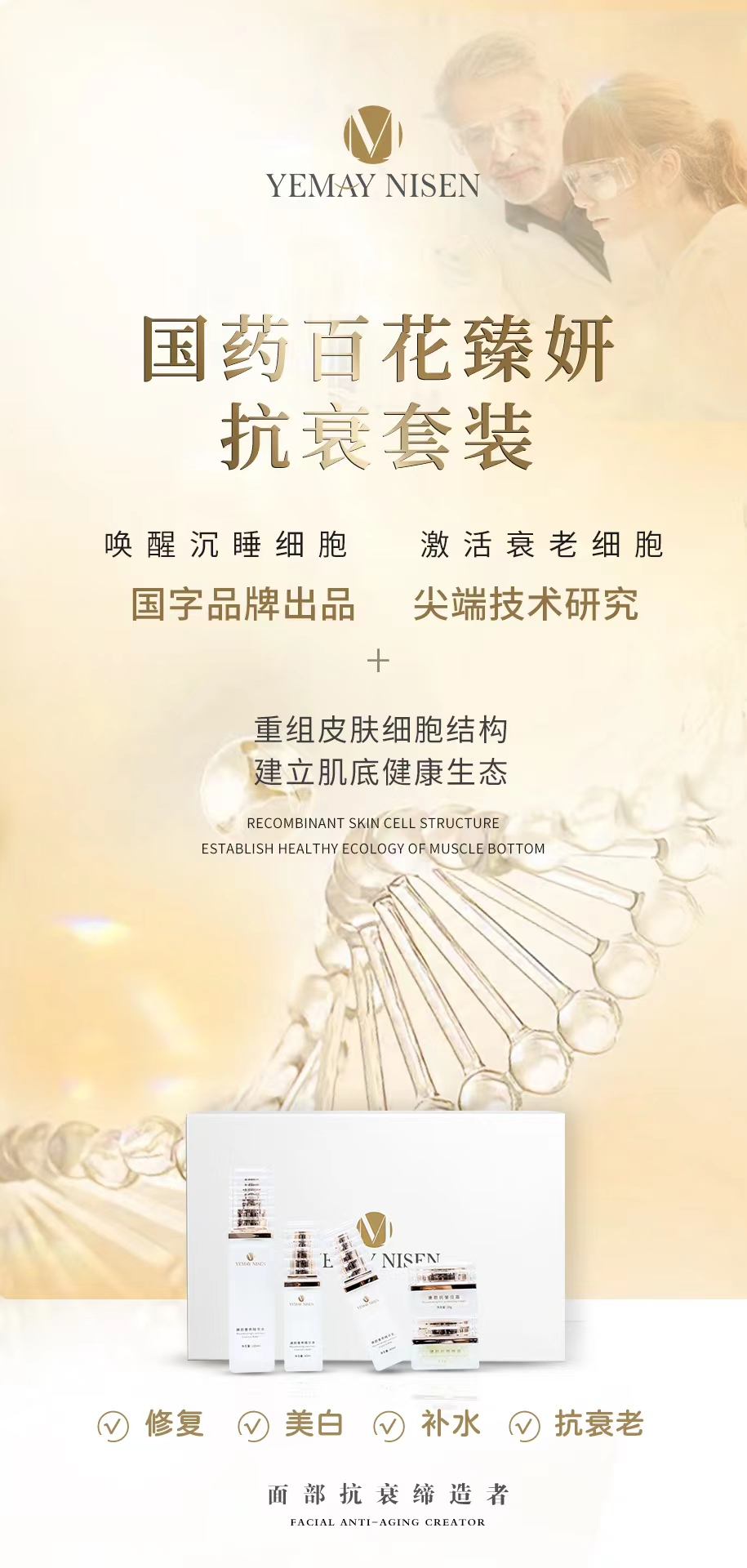 國(guó)藥百花臻妍抗衰套,是妍美盛世控股集團(tuán)聯(lián)合中國(guó)一家超千億醫(yī)藥健康產(chǎn)業(yè)集團(tuán)——國(guó)藥集團(tuán),聯(lián)合推出的新款家居式護(hù)膚組合套。集、有、祛皺、美白、淡斑、于一體的一款類(lèi)涂抹式護(hù)膚品。