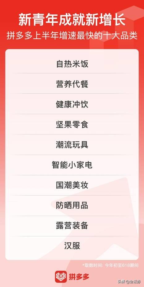 拼多多發(fā)布今年初至618期間增長(zhǎng)快的十大消費(fèi)品類,上半年拼單量增幅位列前三的快消品類均與“吃”相關(guān)。