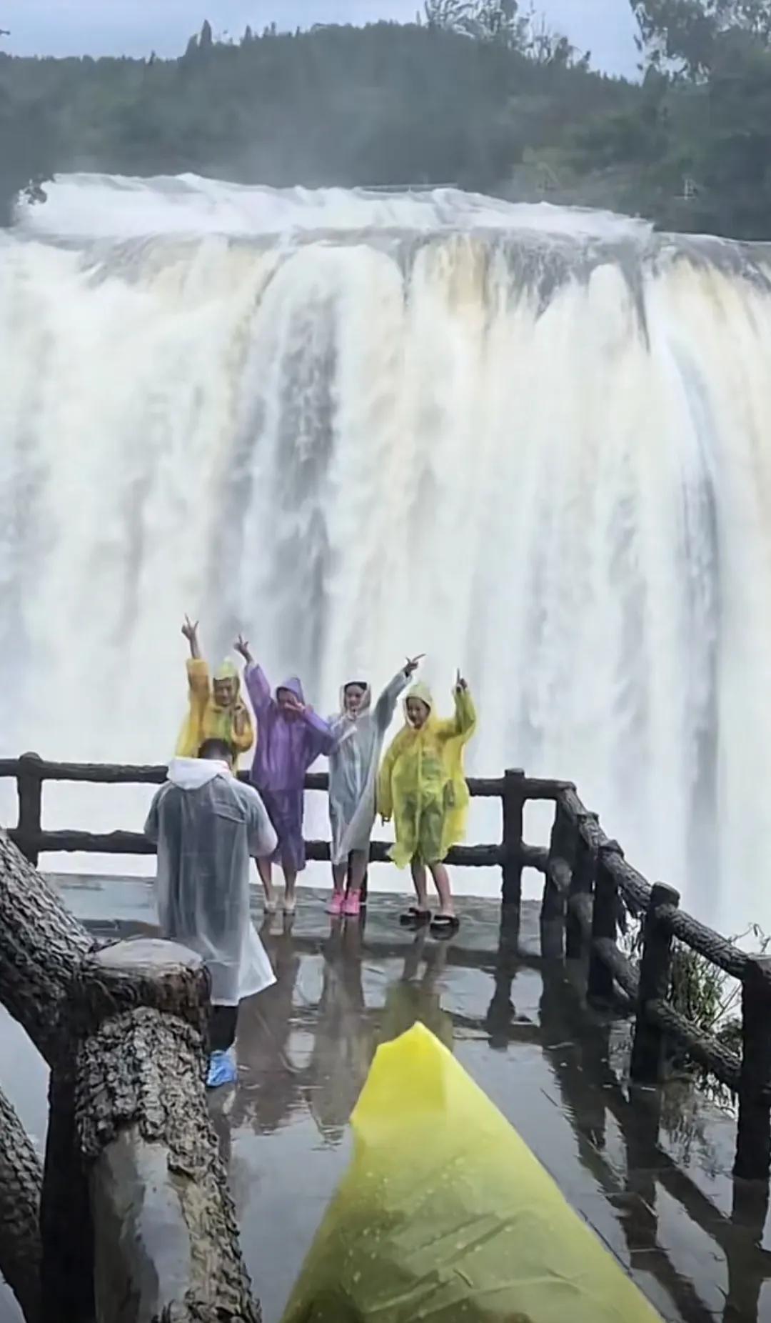 14、黃果樹瀑布水勢(shì)超大,請(qǐng)?zhí)崆皽?zhǔn)備好雨衣?lián)跛苊饬軡褚路?/p>