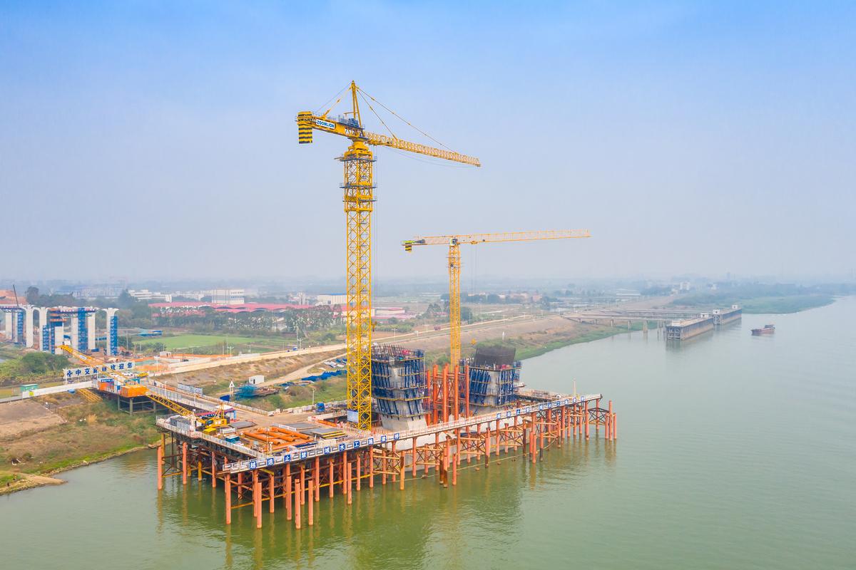 富龍西江特大橋三水岸施工現(xiàn)場(chǎng)。/佛山日?qǐng)?bào)記者王澍攝