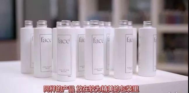 而后他們將相同的產(chǎn)品倒入相對高級的瓶子,導購員則換上白大褂、化上精致妝容。
