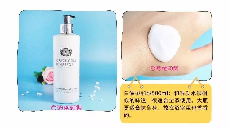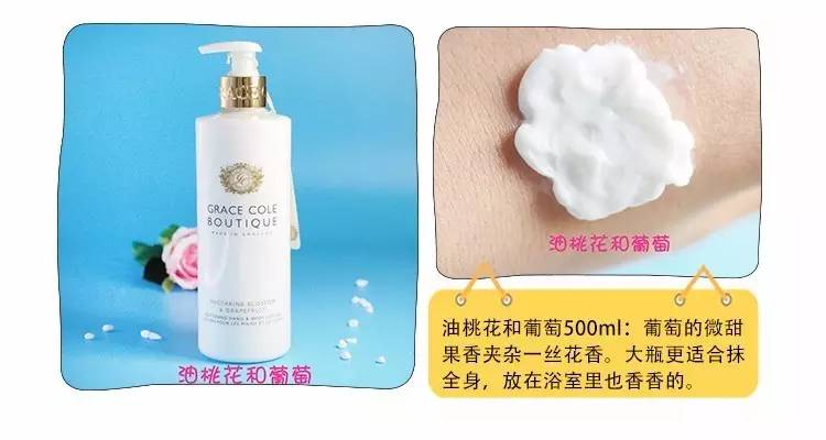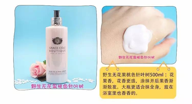 還貼心的分了類型:偏果香的:油桃花&葡萄、薄荷&西柚&酸橙偏花香的:野生無(wú)花果&桃色針葉樹(稍有果香淡并不濃郁)、白油桃&梨、英國(guó)玫瑰&香檳酒、琥珀蘭香,快去仔細(xì)選選吧~
