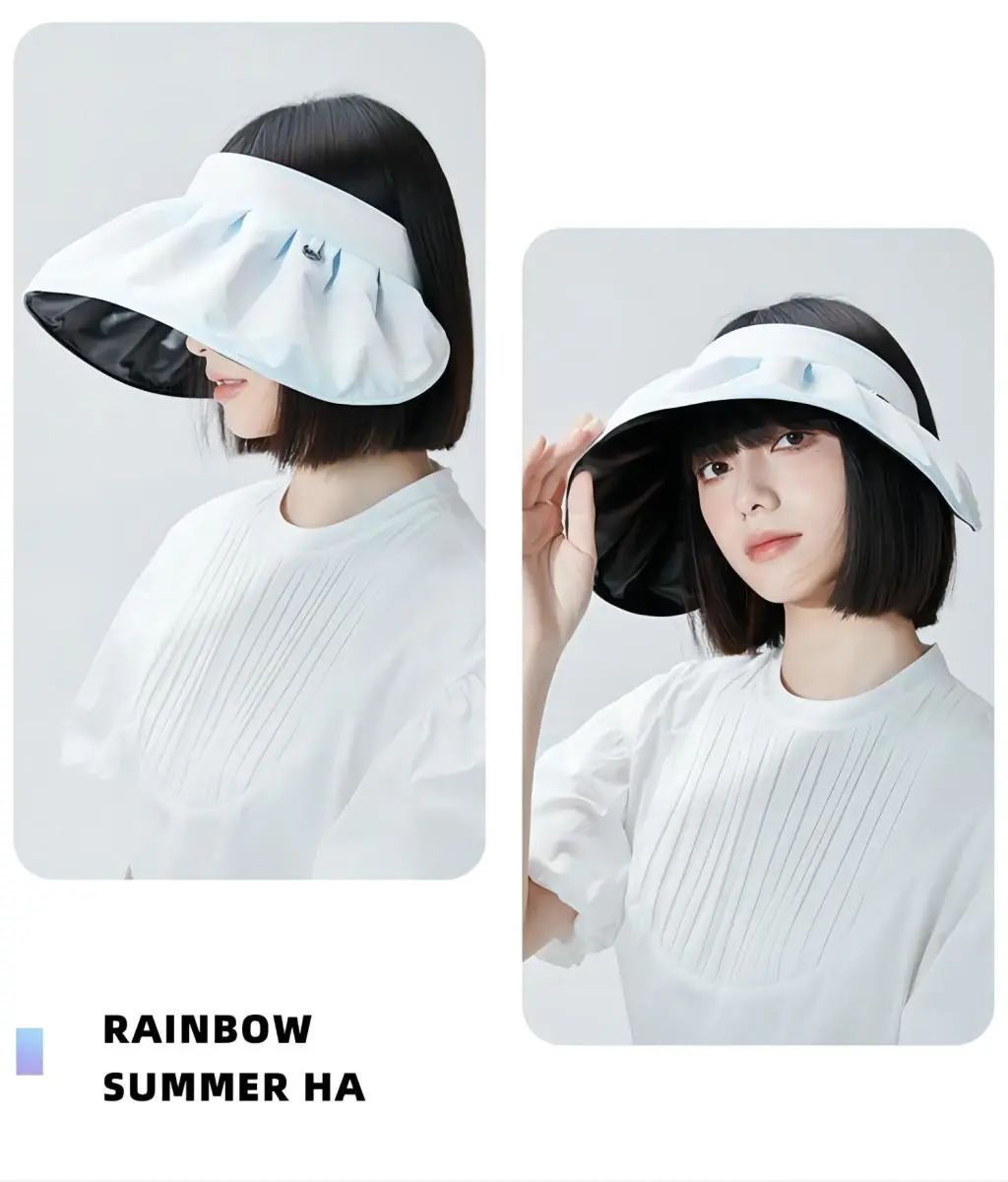 明星網紅們都愛的貝殼防曬帽,清新少女彩虹系列,輕盈無重感,超有元氣感;超大帽沿兒像貝殼一樣,褶皺依舊挺括有型,戴上差不多遮住半張臉,特別顯臉小。