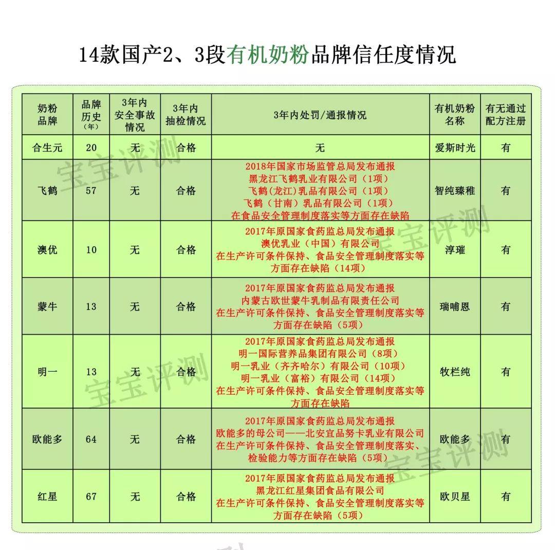 ③事故方面,近3年內(nèi),14款有機奶粉均沒有出現(xiàn)事故。