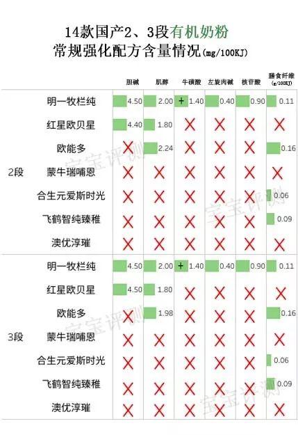 ②14款有機奶粉中,添加的常規(guī)強化配方含量均符合中國國標。
