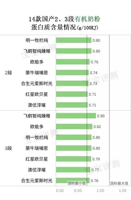 ①14款有機奶粉的蛋白質(zhì)含量均符合中國國標。具體蛋白質(zhì)的優(yōu)劣,在后面的強化配方分析中會涉及。