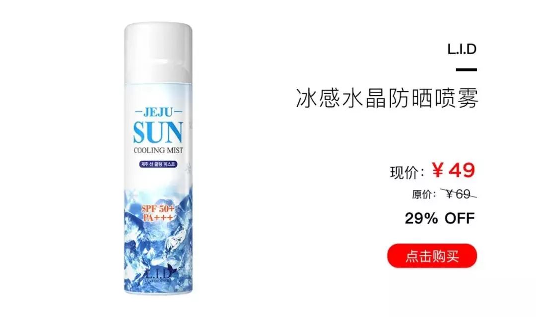 這款L.I.D冰晶噴霧也是噴霧中的佼佼者。SPF50+的防曬指數(shù),要知道,這個(gè)在國內(nèi)就是防曬產(chǎn)品的配置了,日常使用完全hold住。