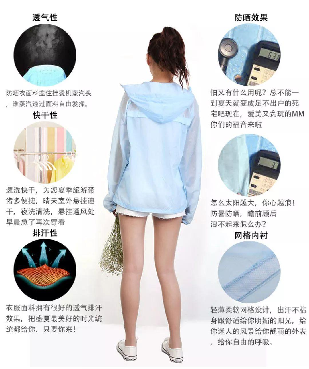 雖然是一件衣服,但是的輕,絕不會造成任何負(fù)擔(dān),這款防曬衣有一個(gè)名字,叫做呼吸防曬衣,即使在炎炎夏日,也絕不會讓你覺得悶熱。