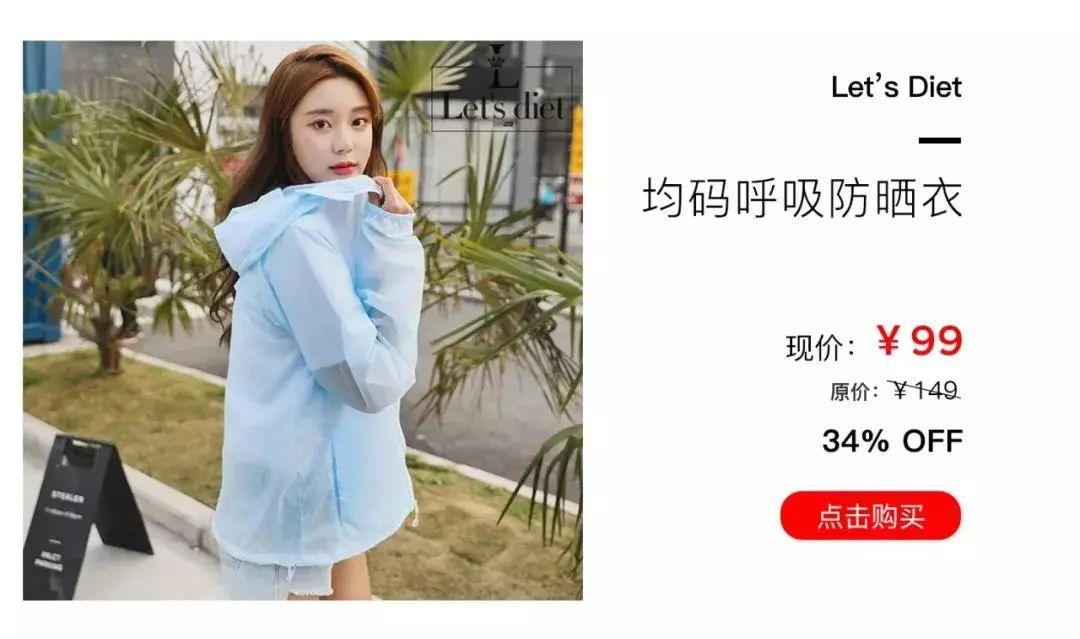 這次品牌也是給到了專屬折扣,平時(shí)149的防曬衣直降至99,直接降了三分之一,劃算!