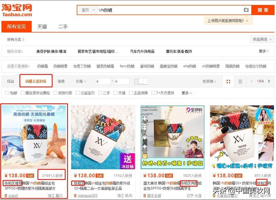 如今,在這一系列事件的影響之下,VN防曬霜即使是在被李佳琦“踩”過(guò)之后,勢(shì)頭依然迅猛,淘寶網(wǎng)上以“張柏芝推薦”為宣傳關(guān)鍵詞的店鋪扎堆。