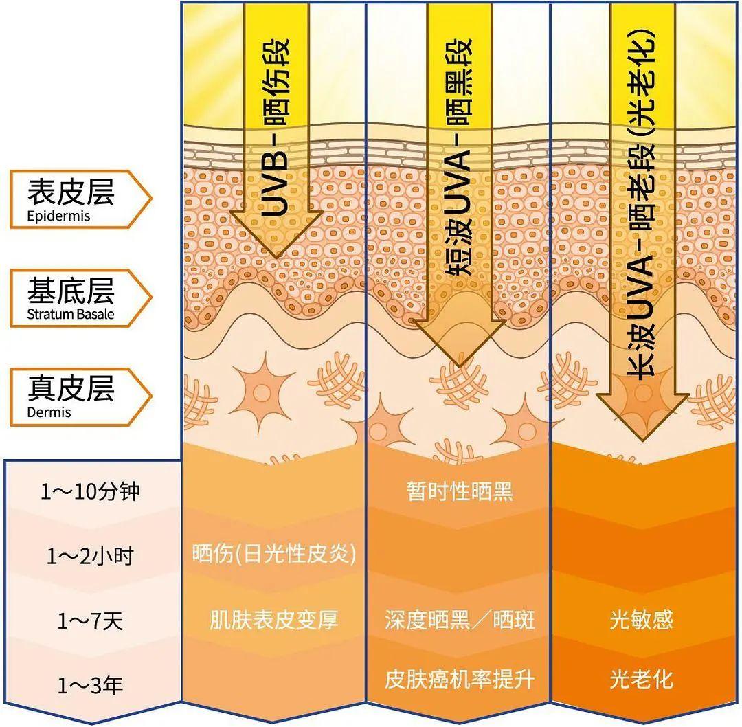 指數(shù)之外,我建議你關(guān)注全波段,也就是我們常說的全光譜防曬。因為傳統(tǒng)PA指數(shù),防的是廣義上的短波UVA,而全波段防曬則兼顧長短波長的UVA。你要知道,長波UVA才是造成皮膚光老化的大殺手,這部分殺傷力很大的紫外線可以直接穿透玻璃,直達層深處破壞膠原蛋白,使皮膚失去彈性產(chǎn)生皺紋。所以,物化結(jié)合全波段防曬至關(guān)重要,一款防曬只有具備這個基礎(chǔ)條件,才有可能同時滿足防曬傷、防曬黑、防曬老。