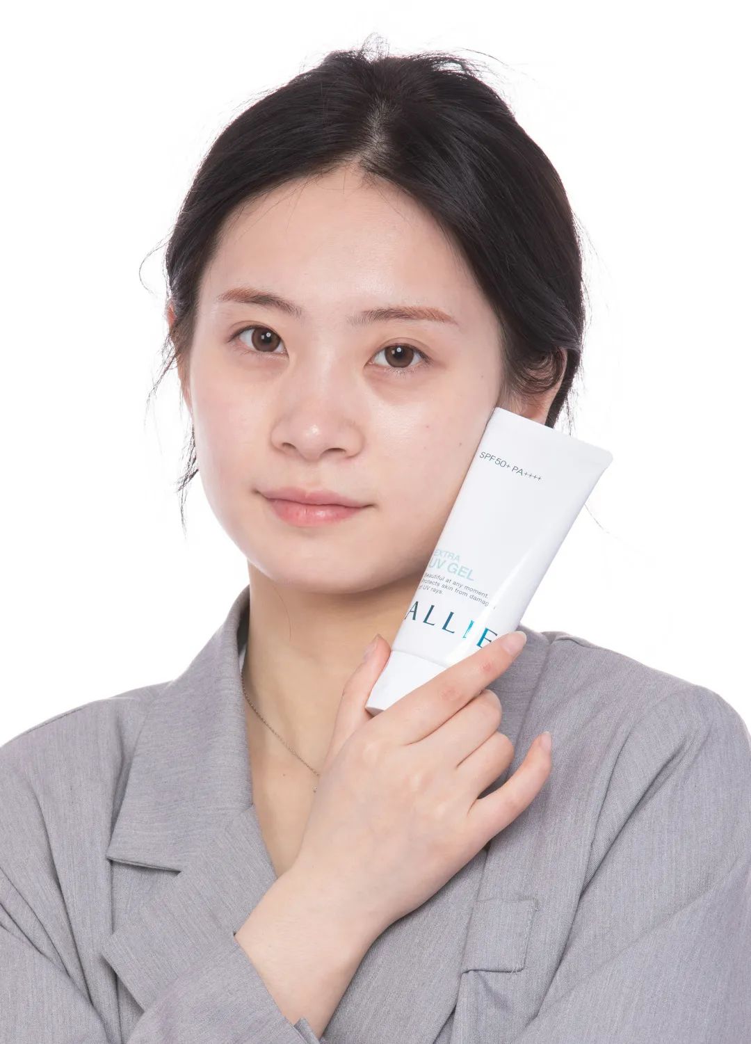 “無化妝,素顏使用ALLIE小綠管,涂抹后會有提亮果,皮膚自帶磨皮柔焦模式。并且水當(dāng)當(dāng)看起來更有元氣。我覺得對我來說這種程度的潤色就足夠了,夏天也不喜歡層層疊疊糊臉,用完ALLIE小綠管之后拍個透明的晚安粉就能出門,還不用卸妝,多么。”