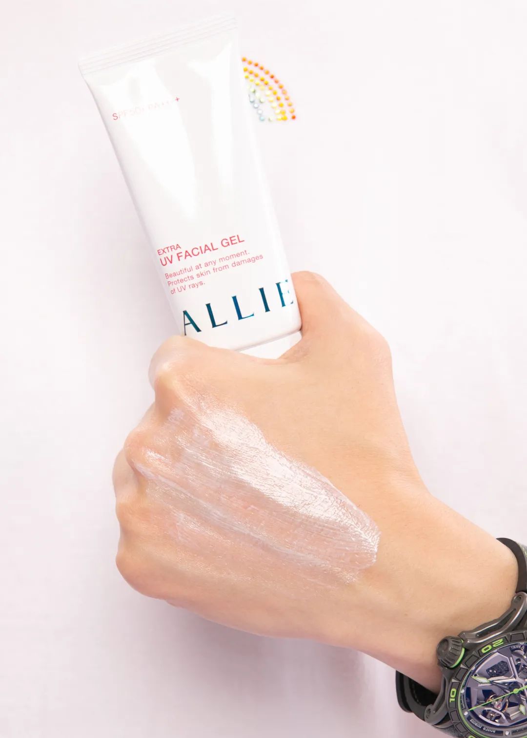 另外,有別于傳統(tǒng)日系防曬的修正液質(zhì)地,ALLIE這一支是少見的膏體防曬產(chǎn)品。有辨識度的膏體質(zhì)地,偏啫喱,看著不薄,抹開后水潤好推開。