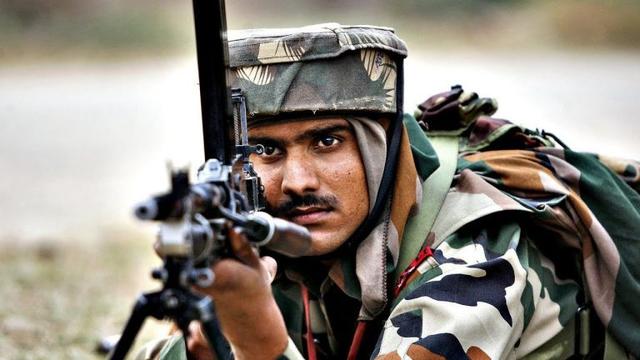 ▲戴方形頭盔作戰(zhàn)的印度士兵