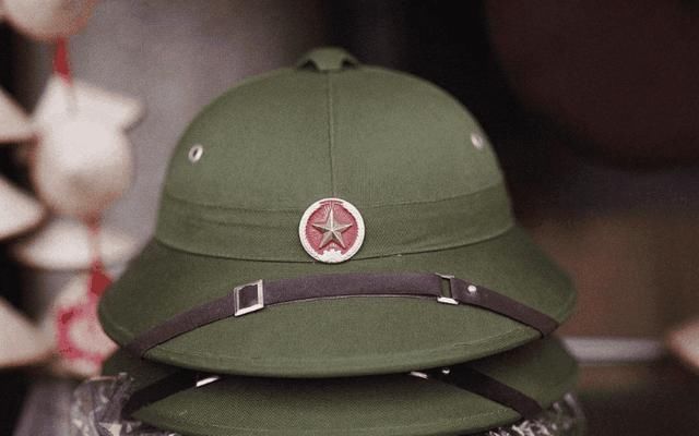 ▲越戰(zhàn)時頭戴木質(zhì)頭盔的越南士兵