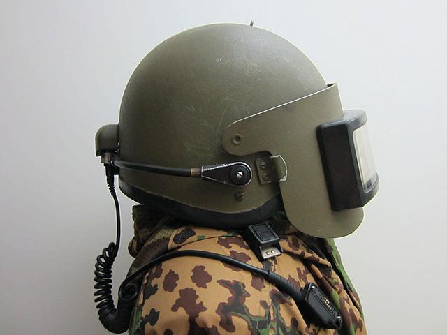 它外形材料為鈦合金打造,對邊緣棱角采取了嚴格的密封處理,包裹內(nèi)襯凱夫拉材料;頭盔前臉部分添加了全覆蓋透明面板,材料應(yīng)為防彈類,同時在內(nèi)部安裝通訊系統(tǒng),又具有極強的防護性能。K6-3頭盔在外觀上更像是電焊工所使用的防護面罩,因此得到了"電焊盔"的綽號,在我國又像老式摩托車頭盔。該頭盔先后裝備了俄羅斯內(nèi)務(wù)部和聯(lián)邦局,在多次恐戰(zhàn)斗和演習(xí)中性能卓越,而且還衍生出了阿爾金頭盔等為數(shù)眾多的改進版本。