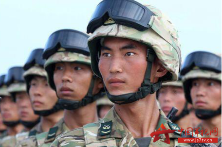▲佩戴11型頭盔的"9·3"大閱兵士兵
