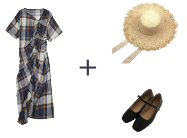 3、連衣長裙+遮陽草帽+瑪麗珍鞋