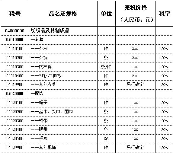這張是海關(guān)總署2012年15號(hào)公告中完稅價(jià)格表的截圖,海關(guān)以此表格中的價(jià)格為準(zhǔn)。