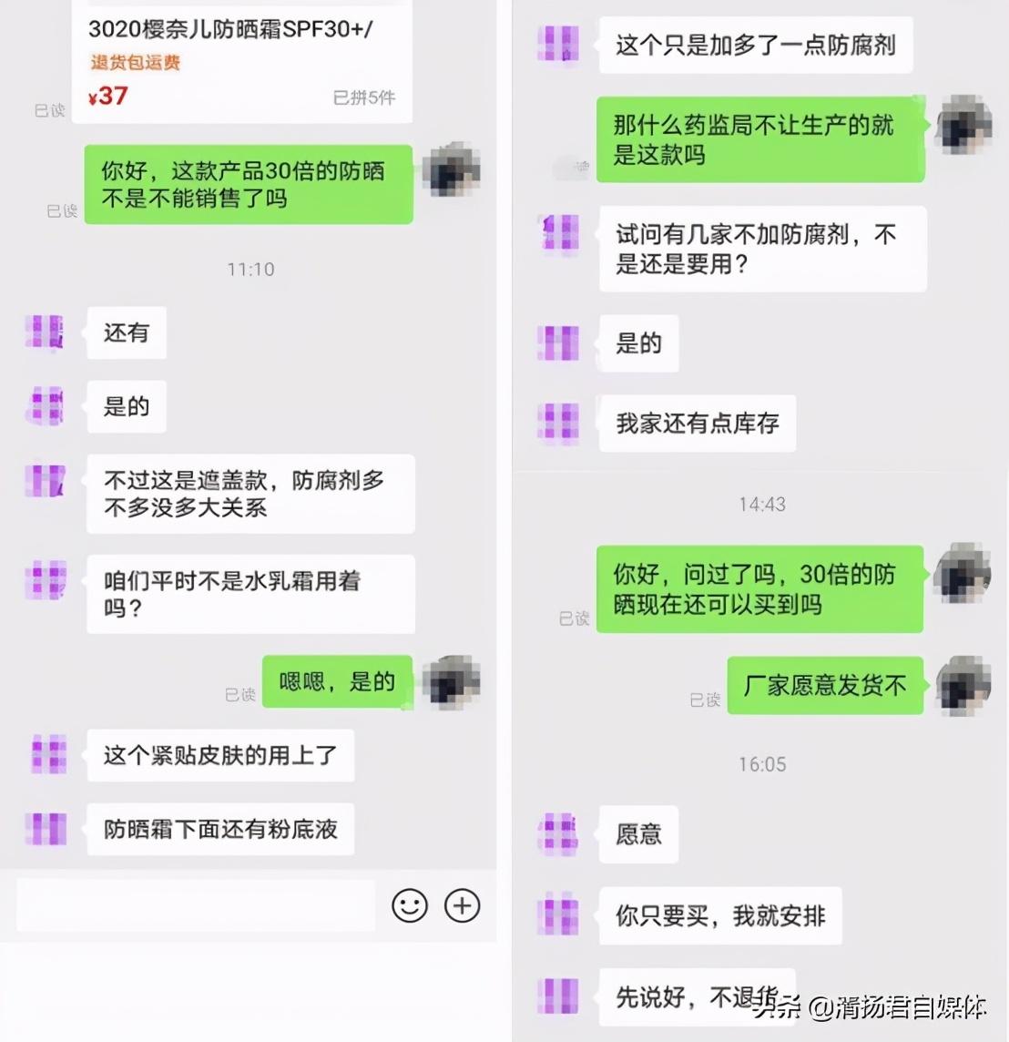 然而小編通過(guò)搜索發(fā)現(xiàn),被涉及的7款防曬產(chǎn)品大部分已從各大電商平臺(tái)下架,但仍有部分產(chǎn)品在市場(chǎng)上銷售,比如櫻奈兒防曬霜SPF30PA++。該產(chǎn)品在拼多多平臺(tái)上至少還有三家店鋪在銷售,而且其中一家店的客服告訴小編,因?yàn)榇蠹移綍r(shí)用乳霜,該款產(chǎn)品雖然防腐劑加多了,但并不直接接觸皮膚,對(duì)皮膚沒(méi)什么影響,如果需要還有庫(kù)存,但是購(gòu)買后不退貨。