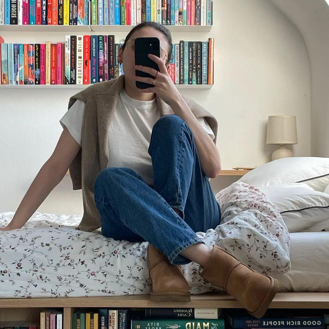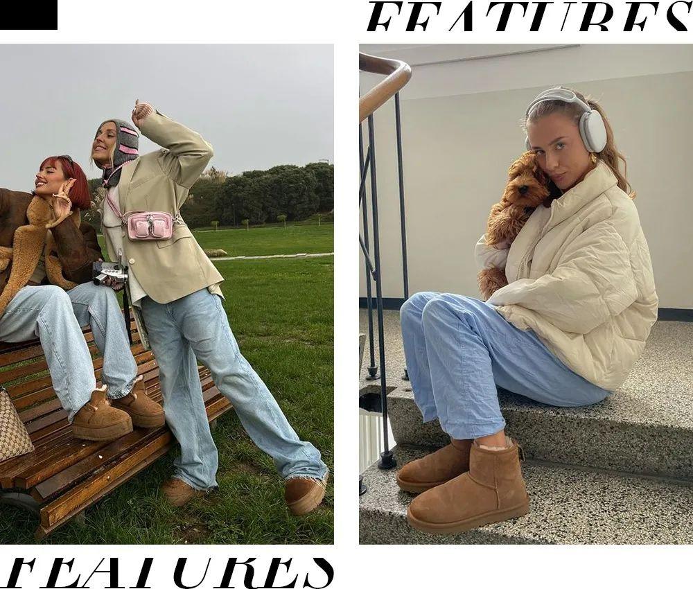 雪地靴同樣也是Y2K女孩的冬季精髓,厚底雪地靴搭配白色堆堆襪或是襪套,馬上就有千禧年的味道。