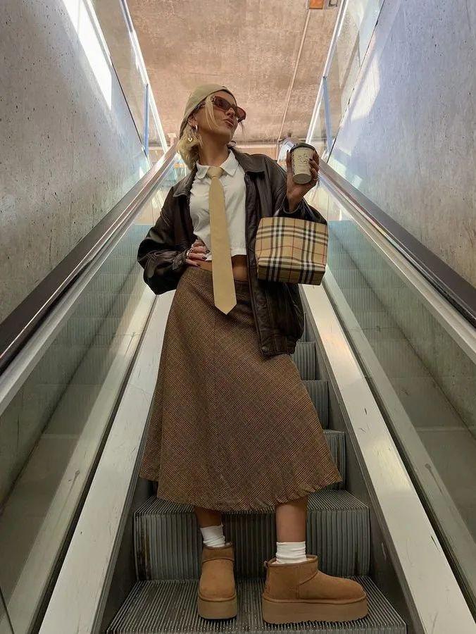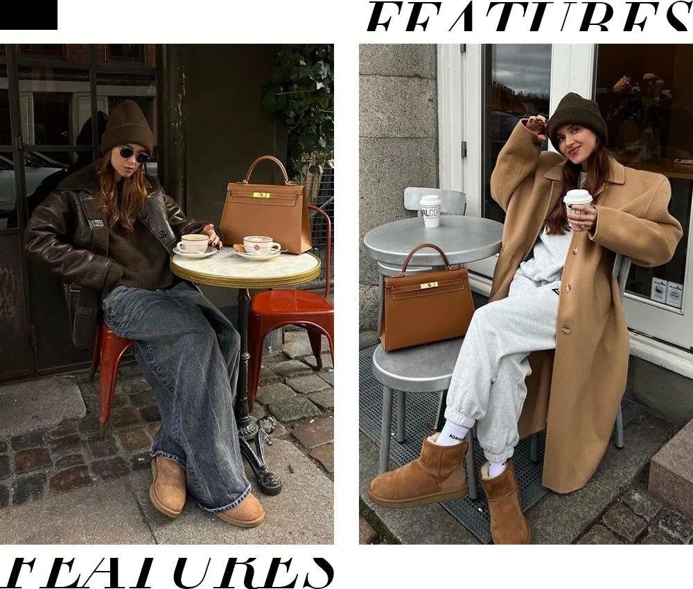 看來是時(shí)候把鞋柜里落灰的UGG拿出來再次搭配了,經(jīng)典的駝色可以搭配各種風(fēng)格,外套可以選擇跟駝色呼應(yīng)的大地色系,今年流行的麂皮單品就是不錯(cuò)的選擇。