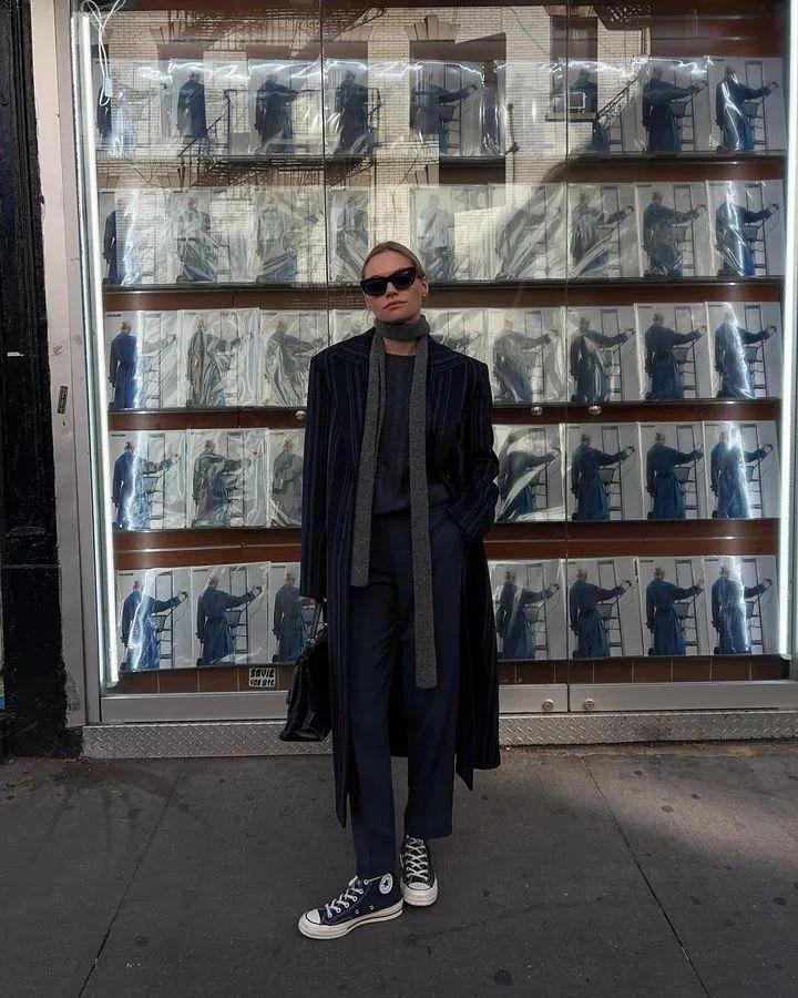 窄幅圍巾,又一件來自千禧年的時(shí)髦單品。前幾年我們對于圍巾的審美都是要厚重的、有包裹性的,但千禧年的窄幅圍巾更看重裝飾性,窄而長的款式為造型增添了很多看點(diǎn)。