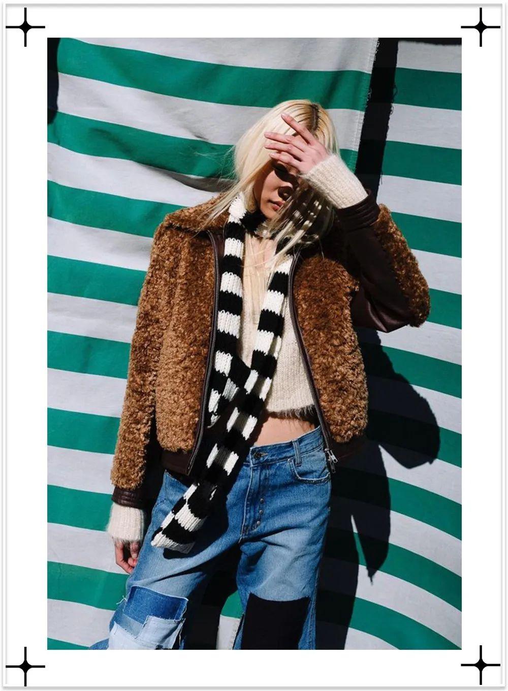 除了針織面料,馬海毛材質(zhì)的圍巾也很受大家歡迎。馬海毛蓬松的質(zhì)感更適合搭配窄幅圍巾。除了Loewe、Marni外,國內(nèi)獨(dú)立設(shè)計(jì)師品牌Short Sentence也推出了馬海毛條紋窄幅圍巾,略帶復(fù)古卻又不會太過跳脫的配色成為了很多人的圍巾first choice。