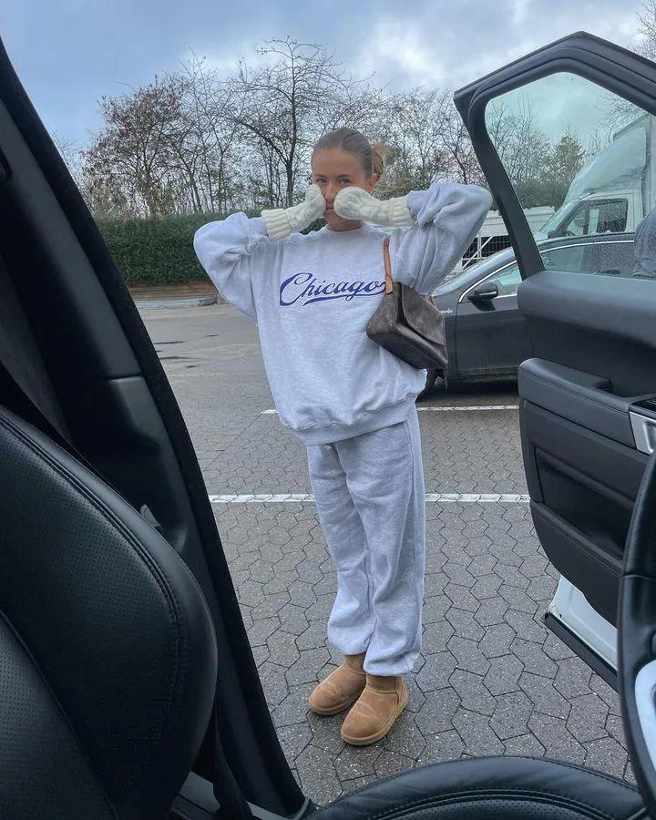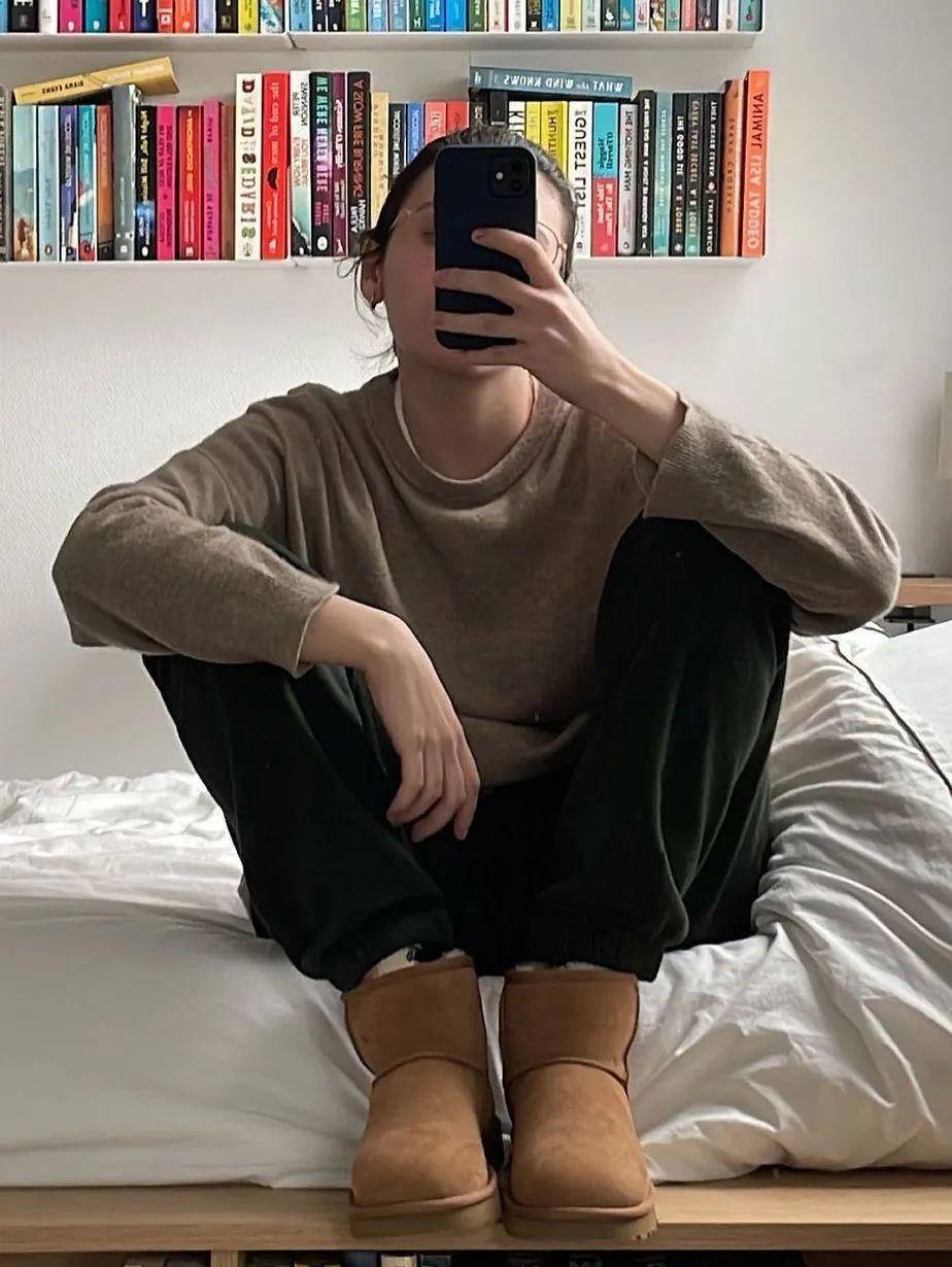 Hoodie搭配衛(wèi)褲就是雪地靴的本命搭配,冬天就是要保暖又舒適。居家辦公出門懶得打扮,這樣一套搭配可以讓你隨意中也不失時(shí)髦。