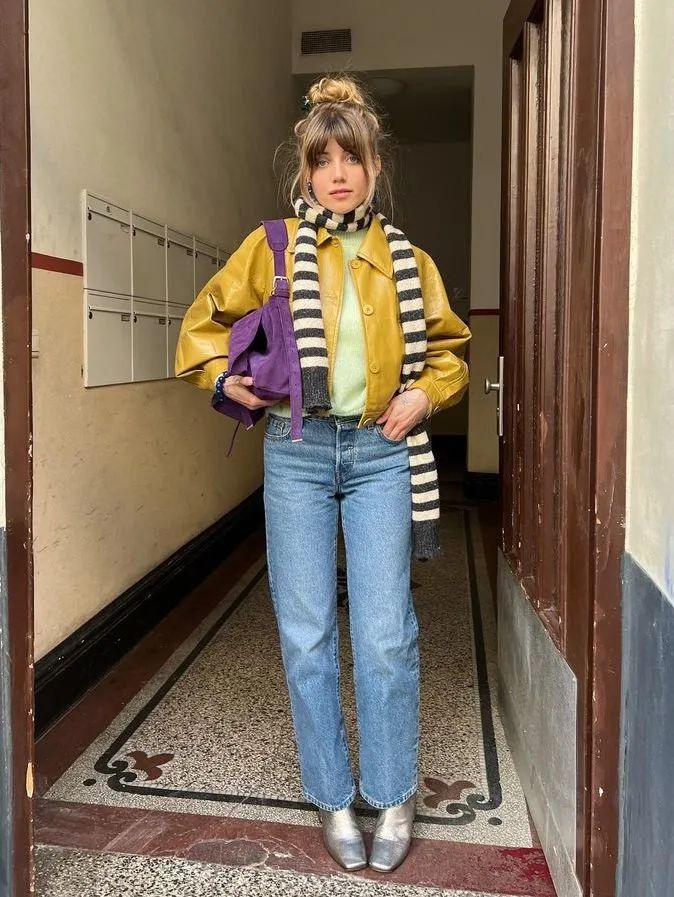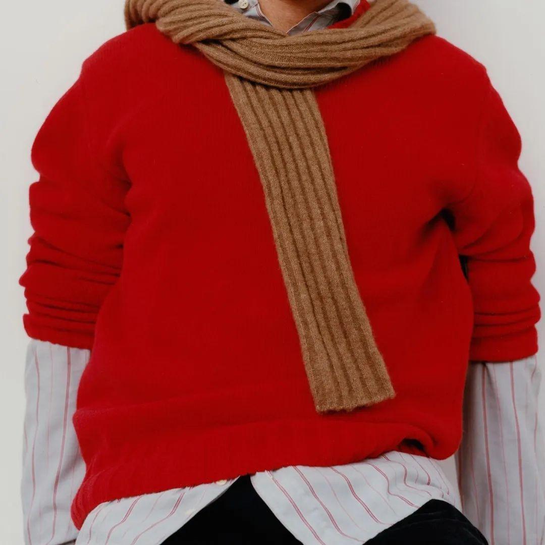 對于厚重的冬裝上衣來說,輕巧的窄幅圍巾其實(shí)反而不會讓人顯得過于臃腫。沒有大面積的占比,可以選擇的樣式也更多了起來,很符合節(jié)日氛圍的條紋款式就是今年的大熱門。
