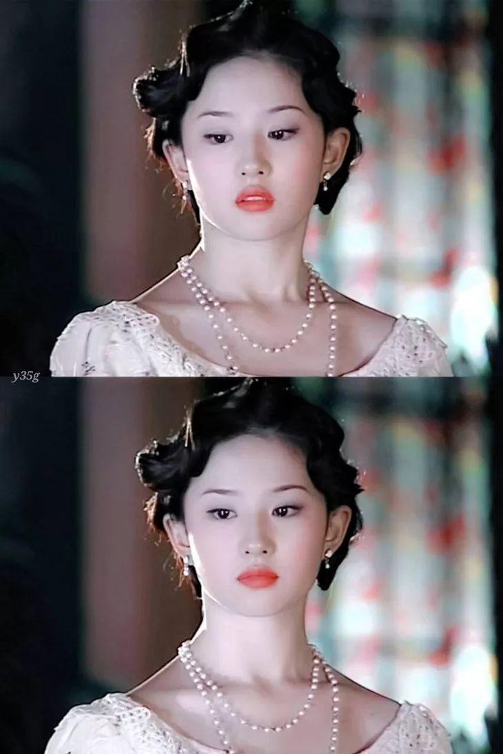 劉亦菲演《金粉世家》的時候還看不出來的顴弓,加上面部軟組織也比較厚實,所以臉型很流暢圓潤。