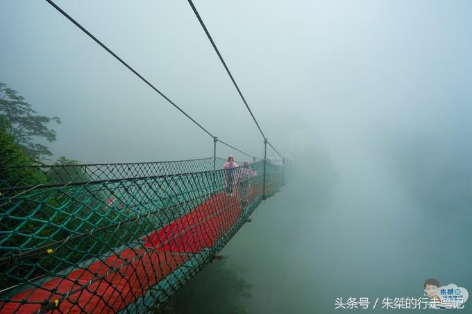 走到玻璃吊橋這里,基本上就是今天這一天游玩奧陶紀的行程了。當時霧還是很大,走在玻璃吊橋上,感覺像是在走進一個叢林秘境。