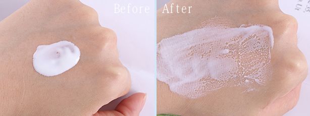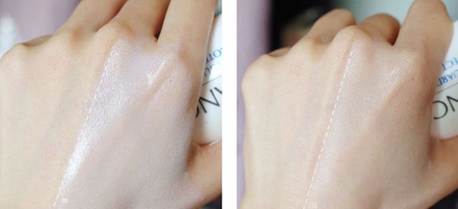 這款質(zhì)地算是比較稠的乳狀質(zhì)地,上臉比較容易推開,更加服帖。然而這款防曬也有物理的通病—泛白!如果擔(dān)心顏色太白,可以出門前20~30分鐘涂抹,給皮膚油脂和產(chǎn)品充分融合的時(shí)間。