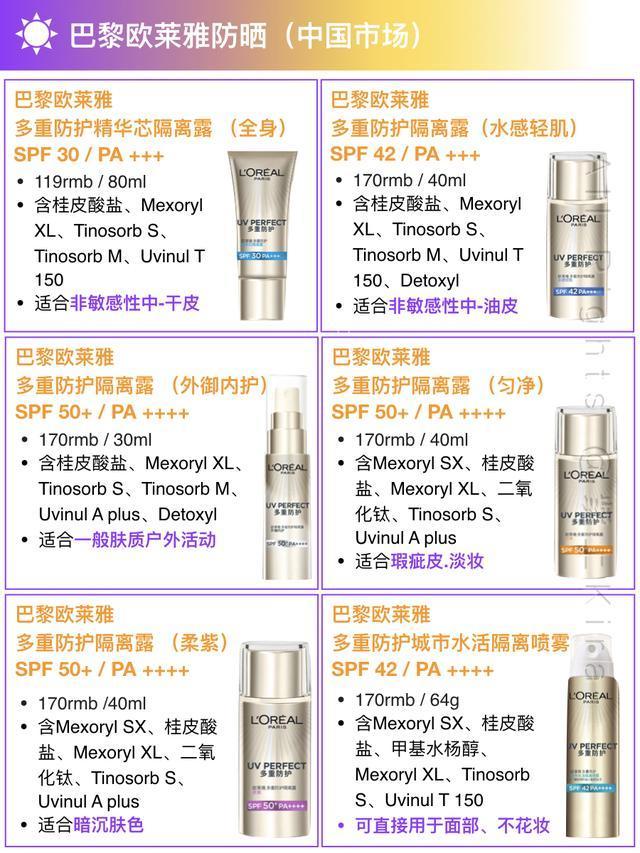 歐萊雅集團(tuán)從上到下的防曬產(chǎn)品,如今都以這對(duì)姐妹花打底,廣譜、的同時(shí)膚感頗佳,尤其適合日常通勤。考慮到光分解,一般還會(huì)搭配其他的防曬劑成分。但到底與純物理防曬的厚重感不同,又能廣譜防曬,何樂而不為?