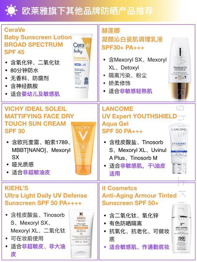 不差錢的貴婦直接考慮HR赫蓮娜和蘭蔻的隔離防曬,前者在防曬同時(shí)更注重抗衰老保養(yǎng),后者更多考慮了化妝的需求。敏感性肌膚直接從醫(yī)美品牌中選擇,價(jià)位從高到低,依次考慮修麗可、理膚泉、契爾氏、Cerave。油皮傾向理膚泉,干皮傾向Cerave。很多人認(rèn)為藥妝VIchy也屬于敏感肌使用范疇,但很可惜,并不是,尤其是超敏皮不適合Vichy泉水。勤儉持家又不是敏感肌的姑娘,千萬別漏了巴黎歐萊雅和卡尼爾。不花妝的防曬噴霧,巴黎歐萊雅、卡尼爾、理膚泉都有,有需要的看清楚,產(chǎn)品有特別標(biāo)注出來的。