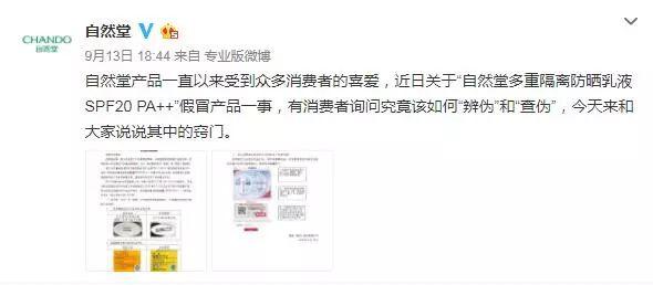 值得注意的是,在該通告發(fā)布后,伽藍(lán)集團(tuán)第一時(shí)間通過自然堂官方微博,針對該不合格產(chǎn)品,發(fā)布聲明澄清,稱:“標(biāo)示為我司生產(chǎn)、生產(chǎn)日期為‘2017.03.06’的‘自然堂多重隔離防曬乳液SPF20PA++’產(chǎn)品非我司生產(chǎn),應(yīng)屬假冒產(chǎn)品,被抽檢單位‘新疆克拉瑪依市名輝化妝品商行’也不是我司授權(quán)經(jīng)銷商。