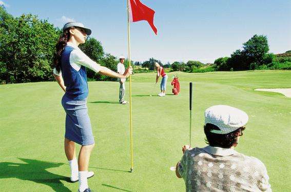 男士穿著有領(lǐng)襯衣,系有皮帶或者背帶的寬松休閑褲,女士著有領(lǐng)襯衣、針織背心、球褲、高爾夫半身裙及長筒襪;忌牛仔褲、緊身衣、圓領(lǐng)、超短裙、高跟鞋入場,應(yīng)選擇軟膠釘高爾夫球鞋以利更好的保護(hù)果嶺和草坪及穩(wěn)定揮桿。