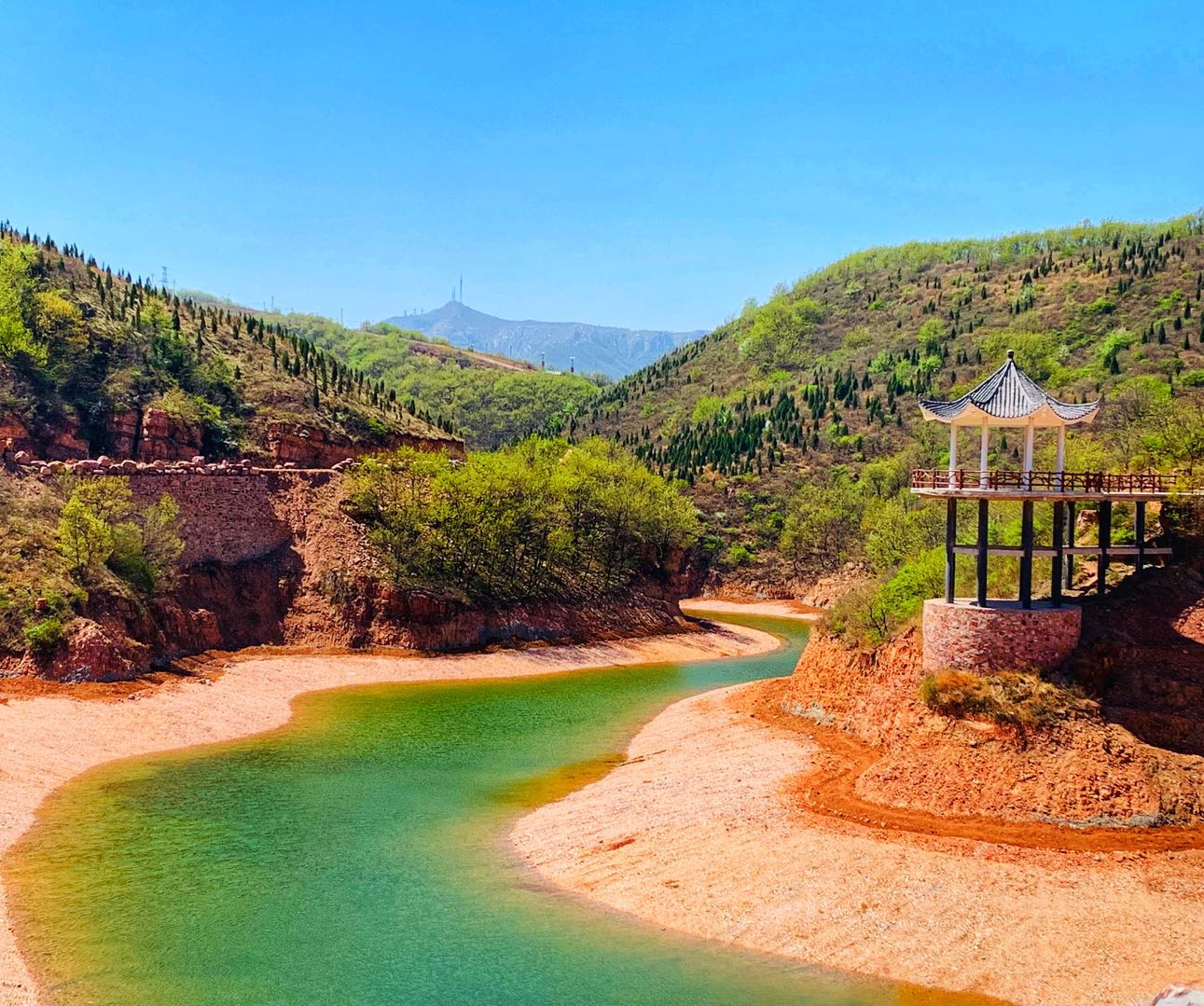 山水相連的棲鳳峪,綿延不斷 的景色秀麗,使人在感到自然的雄渾壯觀,也感受到溫柔多變。平靜的湖水就像一面寶鏡,晶瑩剔透,把峰巒疊翠的倒映盡收其中。