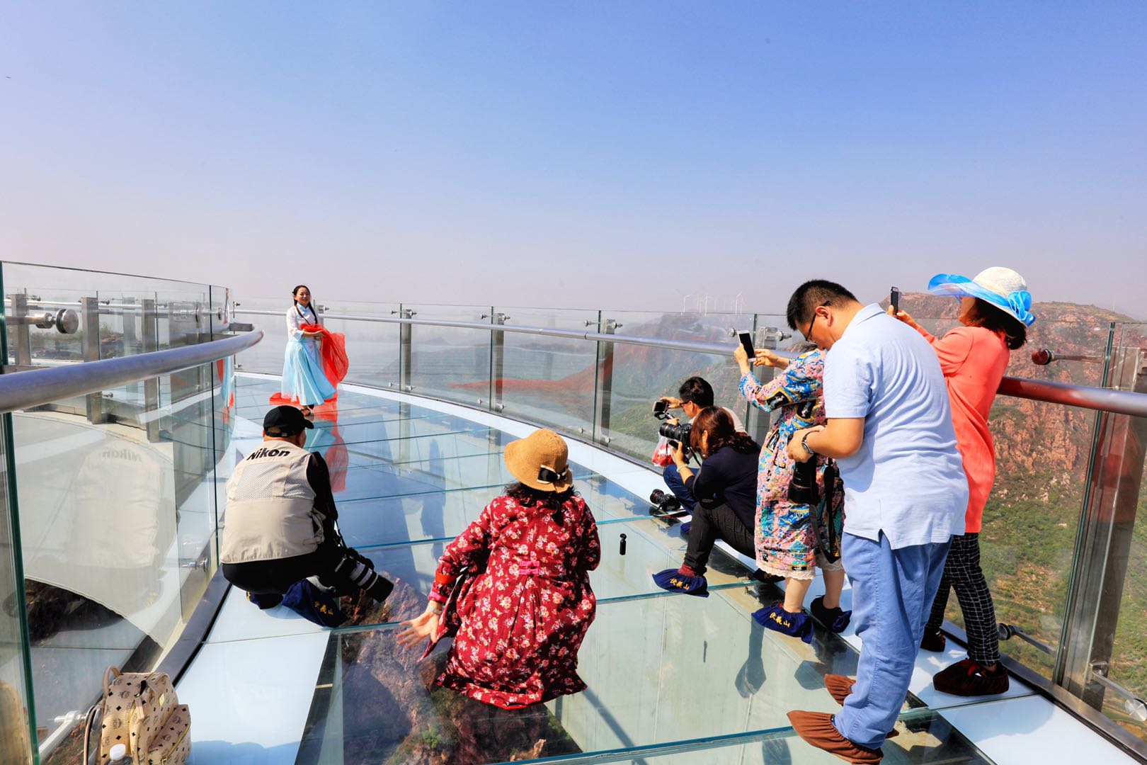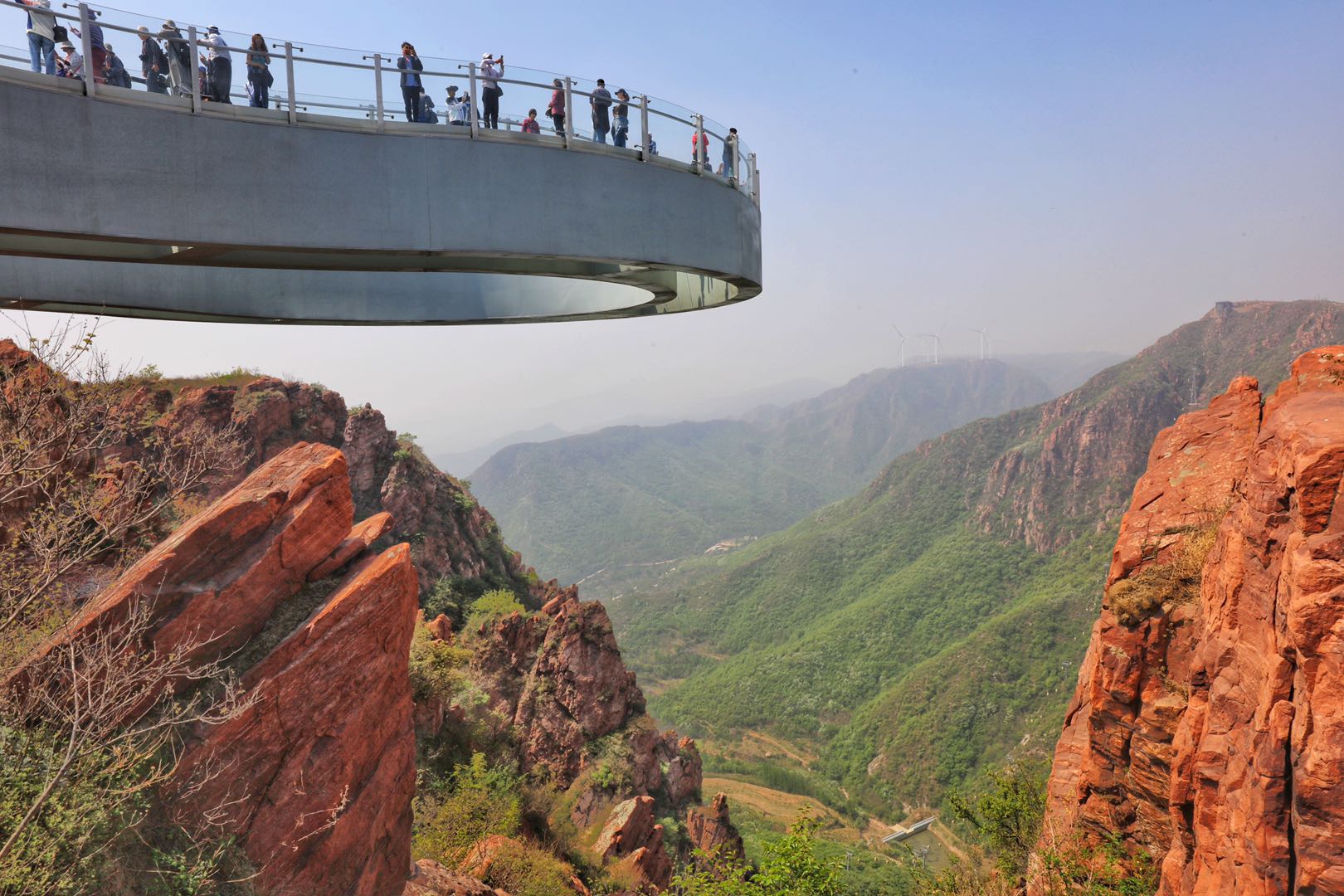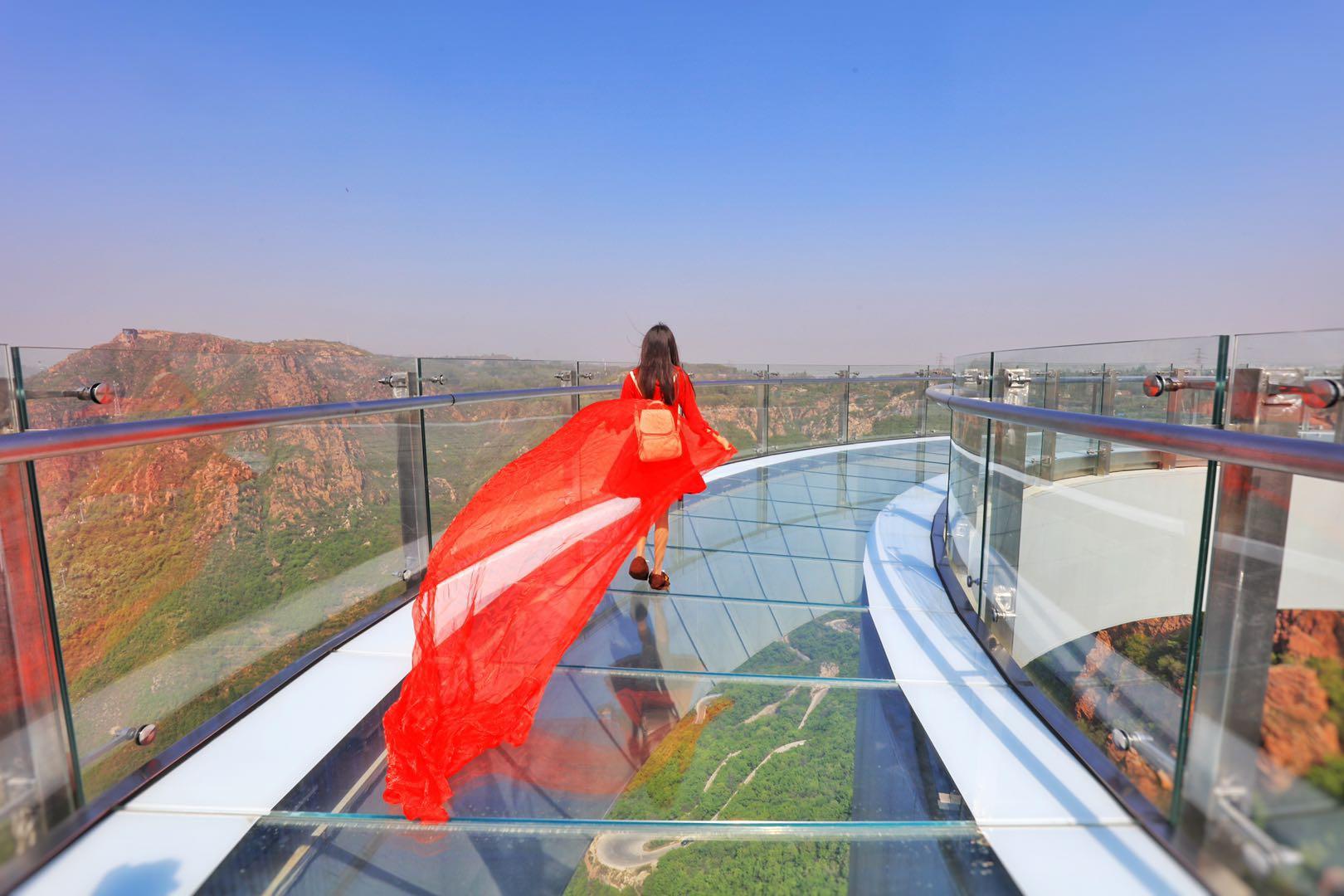 在伏羲山旅游區(qū)的紅石林景區(qū),精彩不容錯過的是,在玻璃環(huán)廊上漫步,而且這里是世界長玻璃環(huán)廊!距離峽谷地面360米,環(huán)廊伸出懸崖30米,驚險又刺激。不用擔(dān)心問題,玻璃是采用三層玻璃夾膠材質(zhì),堅固耐用。