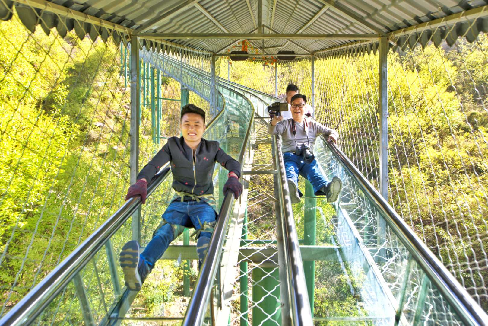 游客只需要系好帶,緩緩行進時,一邊欣賞風(fēng)景,快如閃電時,感受風(fēng)在耳邊呼嘯。