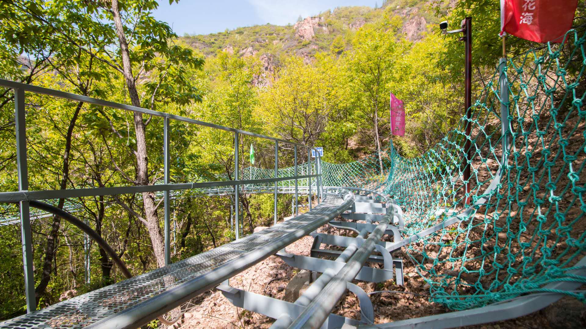 叢林穿越也驚險,管軌式滑道呈多個螺旋樣與S狀在叢林中百轉(zhuǎn)千回。可一人、可多人。一般工作人員充當(dāng)車頭,他可以熟練控制速度,可快可慢。