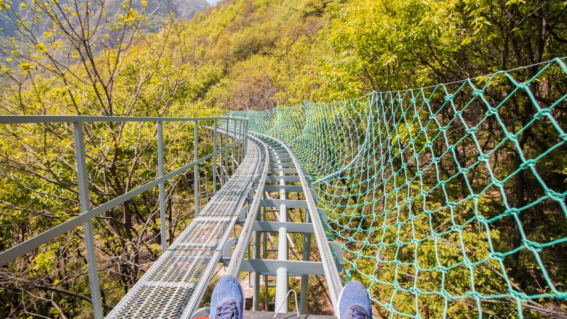 低頭往下看如臨深淵,每顫顫巍巍走一步,都是在考驗?zāi)懥?。但其采用的是特殊玻璃,這類玻璃比傳統(tǒng)玻璃材料要堅固25倍,所以,一歲的寶寶都可以在上面跑跳自如。