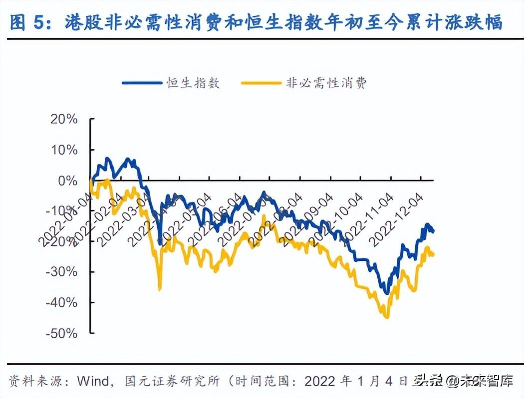 從行業(yè)累計漲跌幅來看,A 股紡服排名 12,港股非必需消費排名第 9。2022 年 1 月 4 日至 12 月 16 日,A 股方面,紡織服飾行業(yè)的累計跌幅為-12.30%,在申萬 31 個 一級行業(yè)中排名第 12 位,落后于煤炭、綜合、交通運輸、社會服務、房地產(chǎn)、商貿(mào) 零售、建筑裝飾等行業(yè)的表現(xiàn)。港股方面,非必需性消費的累計跌幅為-25.00%,在 12 個恒生綜合行業(yè)中排名第 9 位,落后于能源、電訊、綜合、金融、原材料、必須 性消費等行業(yè)的表現(xiàn)。