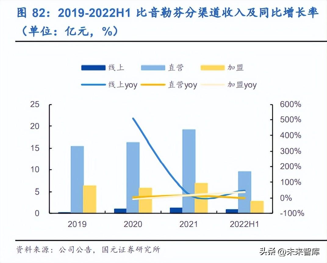 相較于安踏,李寧積 極以“搭建總部平臺”、“提升店鋪經(jīng)營率”、“構(gòu)建標準化零售運營體系”三個方向 探索大店經(jīng)營模式,公司主要負責開設旗艦店探索高率、可盈利的單店運營模式, 強化總部職能和終端店鋪的業(yè)務能力,為加盟店的規(guī)?;瘡椭频於ɑA。因此,兌現(xiàn)至財務報表,公司 DTC 收入占比有所下降,對特許經(jīng)銷商的依賴加深。根據(jù)李寧公 司公告,截至 2022H1,公司直營收入為 27.92 億元,同比增長 10.8%,占總收入的 比例為 22.5%,同比下降 2.2pcts;特許經(jīng)銷商收入為 58.94 億元,同比增長 28.5%, 占總收入的比例為 47.5%,同比增長 2.5pcts,主要受益于零售化改革下特許經(jīng)銷商 對未來市場的看好,訂貨量增加。