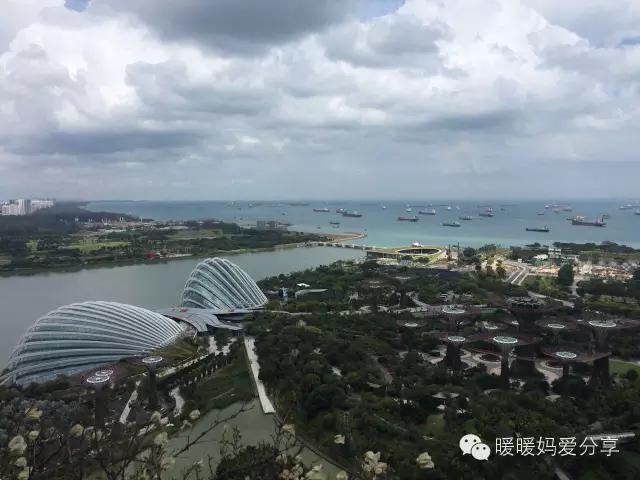 不過一到陽臺(tái)就驚呆了!這金沙酒店,千好萬好,就勝在一個(gè)景致??!不管朝哪個(gè)方向,一定要住高層才能看見漂亮的景色,太低了都被濱?;▓@和購物中心的大樓擋住了。我們就趴在陽臺(tái)上,白天看一望無際的新加坡海港上各種貨輪游輪,晚上看如同阿凡達(dá)場景般的濱?;▓@,實(shí)在是愜意。
