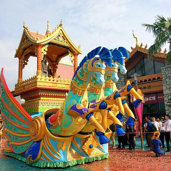 景區(qū)內(nèi)還有傣泰風情花車巡游,14輛花車,將傣泰風情展現(xiàn)的淋漓盡致:孔雀公主、王子、祈福、金湖女王……還有歡樂的表演,民族風情等。