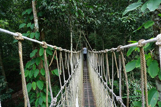 在望天樹景區(qū)內(nèi),有一條長500米,距離地表36米的“空中走廊”。走廊是用粗大的鐵索在高大的望天樹之間連接建成,很,但很刺激。
