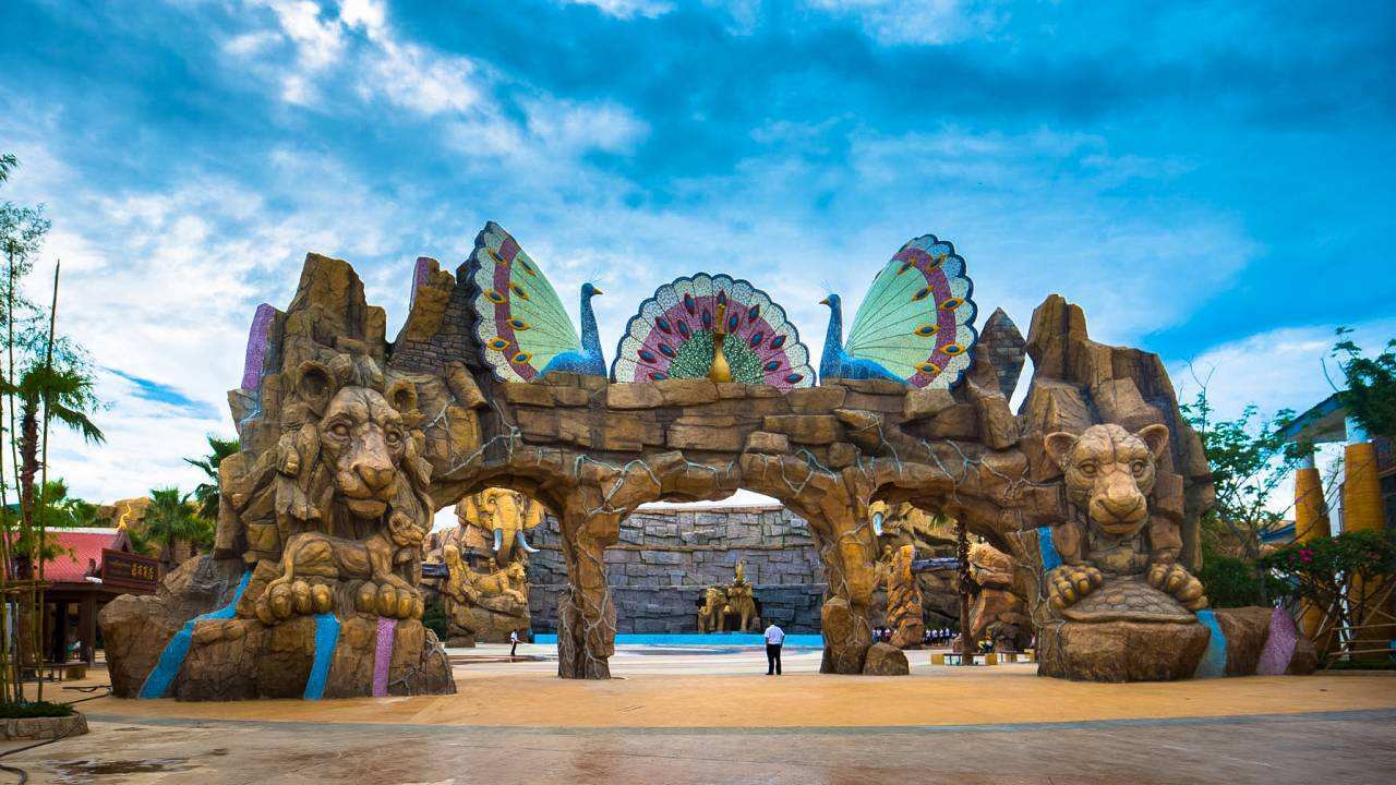 景區(qū)主要游玩項目有:360°心形過山車,蝴蝶王國,漁人碼頭、野象樂園、茶馬古道,隨時隨地的“潑水節(jié)活動”……